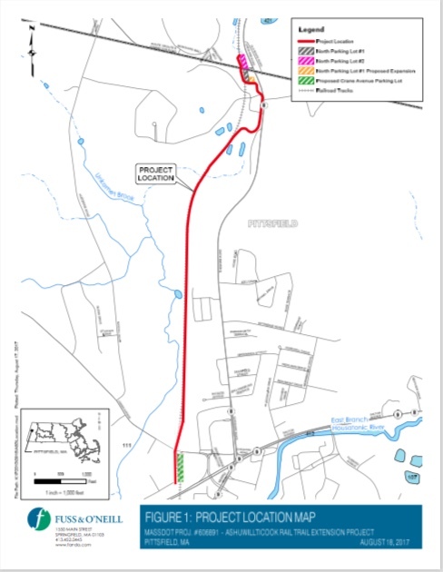 The next step, forging another mile-and-a-half south into Pittsfield, is now under construction. That project is designed by Fuss & O’Neill and is being built by local contractor Maxymillian, Inc. of Pittsfield. This segment, expected to be open in Spring 2022, will continue the 10-foot-wide paved path and feature an upgraded trailhead parking lot with bathrooms (source). Heading north, as the linked iBerksihres article notes, “a Williamstown section is out to bid and a one-mile North Adams leg is still in the planning stage”.