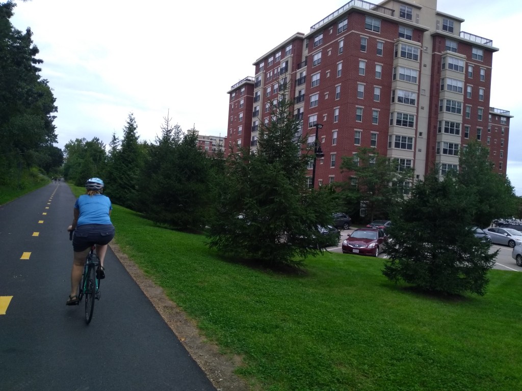 Here’s a sampling of photos from the return leg of our roundtrip ride from Old Connecticut Path to the trail’s southeastern terminus at Navy Yard Field (so the photos start there and proceed back northwest). For more of a background on this project, see this post from February.