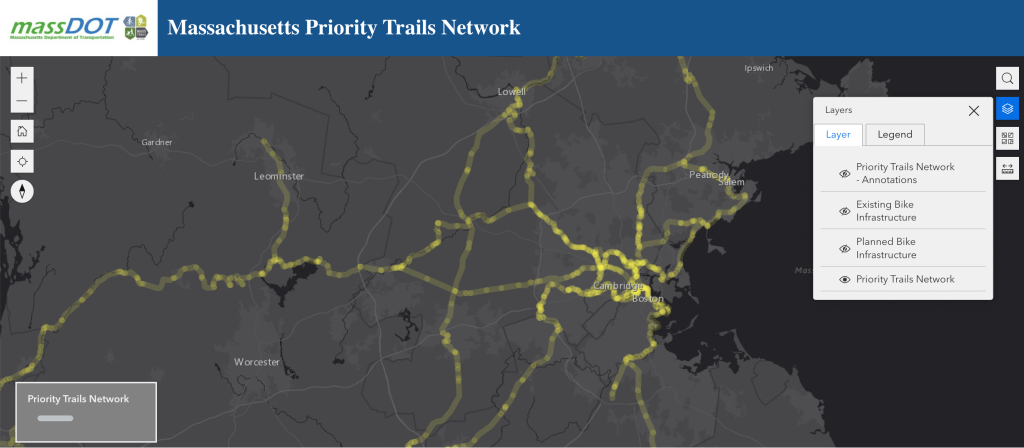 MassDOT’s role in the MassTrails initiative and its implementation role in managing the design and construction of many of the Commonwealth’s shared use paths shows how the agency recognizes the transportation value of shared use paths. The new highlighted segments include: