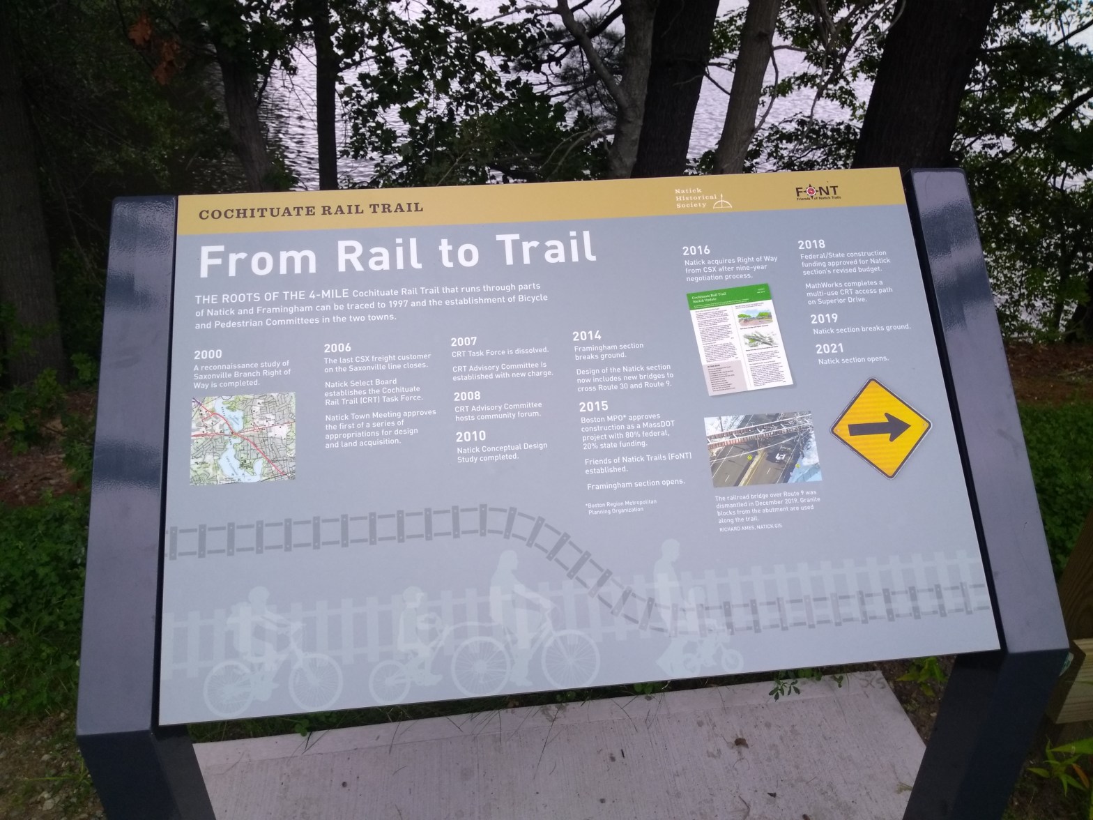 The extension of the Cochituate Rail Trail 2.2 miles southeast from Route 30 in Natick to Natick Center hasn’t had its official ceremonial opening yet, but that didn’t stop large numbers of people (including Eve and me) from using it Saturday in its “unofficially open, usable” status. Here’s a sampling of photos from the returnContinue reading “A late-summer ride on the Cochituate Rail Trail extension”